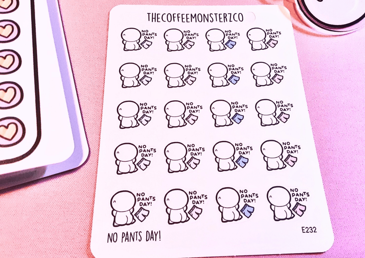 Butt cheeks, butt cheeks! Need I say more? π Okay, I’ll say a bit more; the reason why I love this sticker sheet from TheCoffeeMonsterzCo is because it’s all about chill days, all comfy at home, resting and relaxing. It went through a reformat recently but it’s still just as laughingly cute! (There’s also a no-bra sticker sheet…which I own! π )