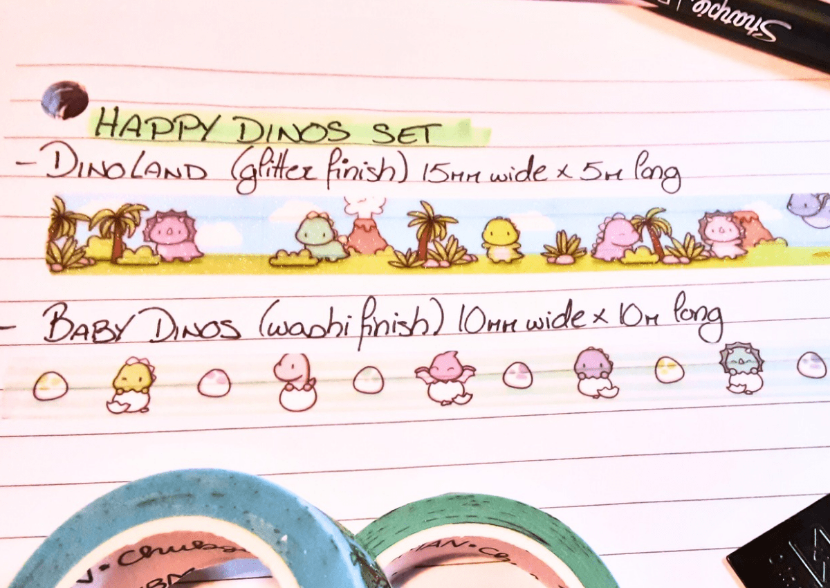 H&C Happy Dinos Washi Tape Set β Happy baby dinosaurs! π¦π₯