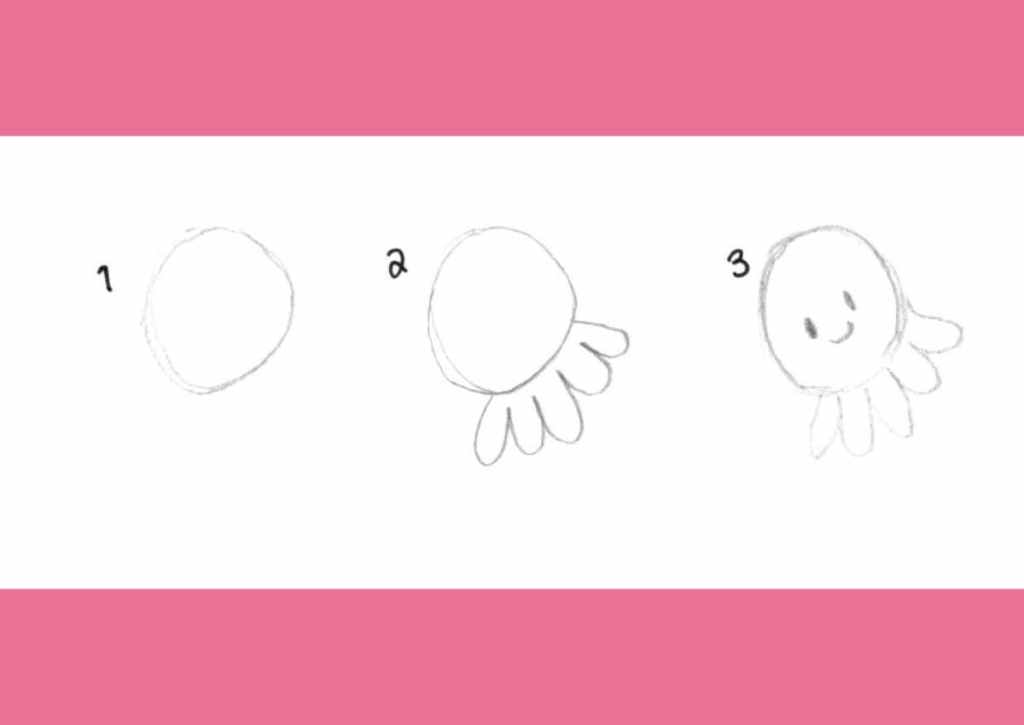 Start with a simple circle, then add tentacles flowing out from the bottom. I usually go with an odd number of tentacles (5 or 7) β€” it just feels more balanced and visually satisfying. ✏️✨