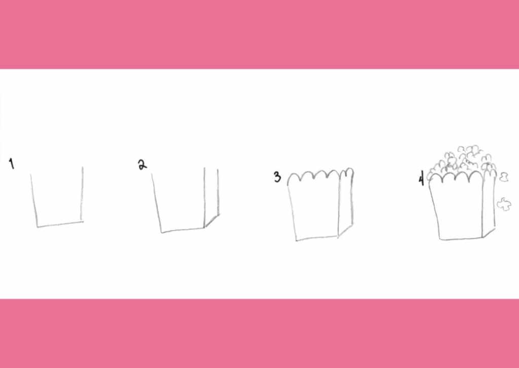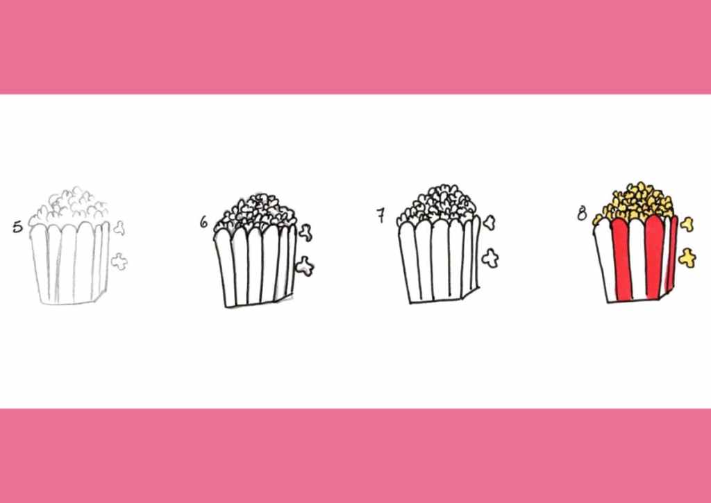 Now for the fun part: draw the popcorn! Use bouncy lines, wavy blobs, overlapping half-circles β€” just go with the popcorny flow! πŸ˜„