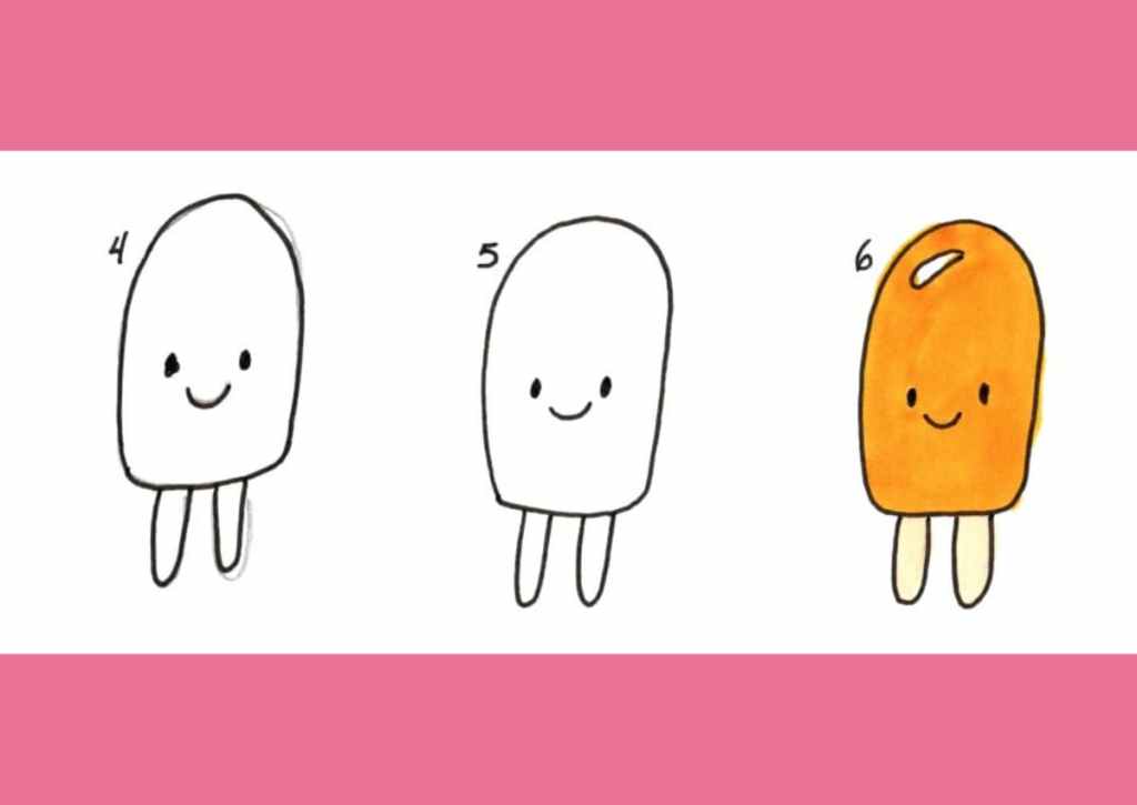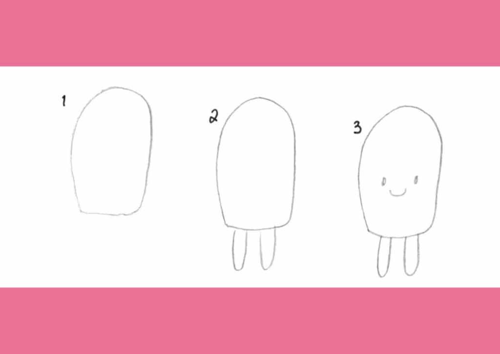 Start with a rectangle, and round off the corners. Then add a half-circle at the top (for that classic soft popsicle look), and draw two little sticks at the bottom. 🍑