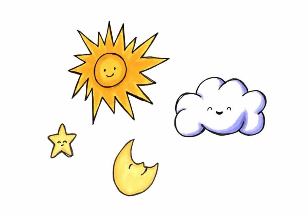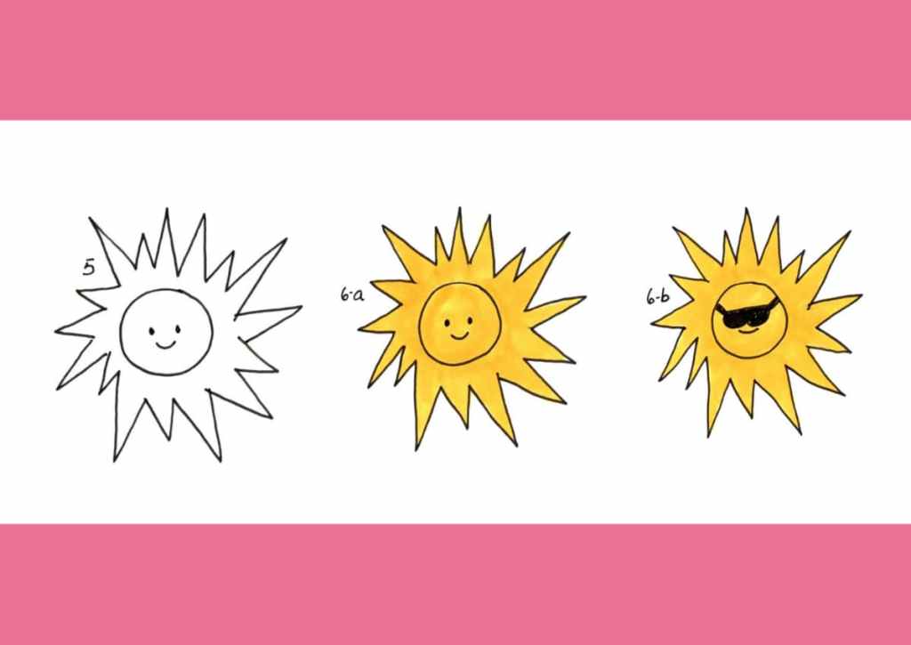 Want to add a touch of kawaii? Give your sun a tiny face (two dots and a mouth line) right in the center. 🌞