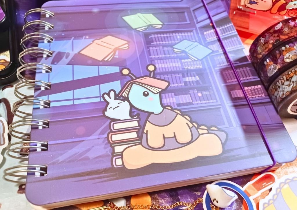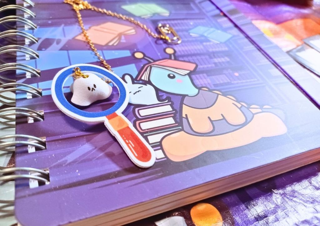 It is so difficult for me to pick only three favorites… but if I have to, I’d say the notebook, the mini-ghost bookmark, and the Nohnoh vinyl sticker with the books.