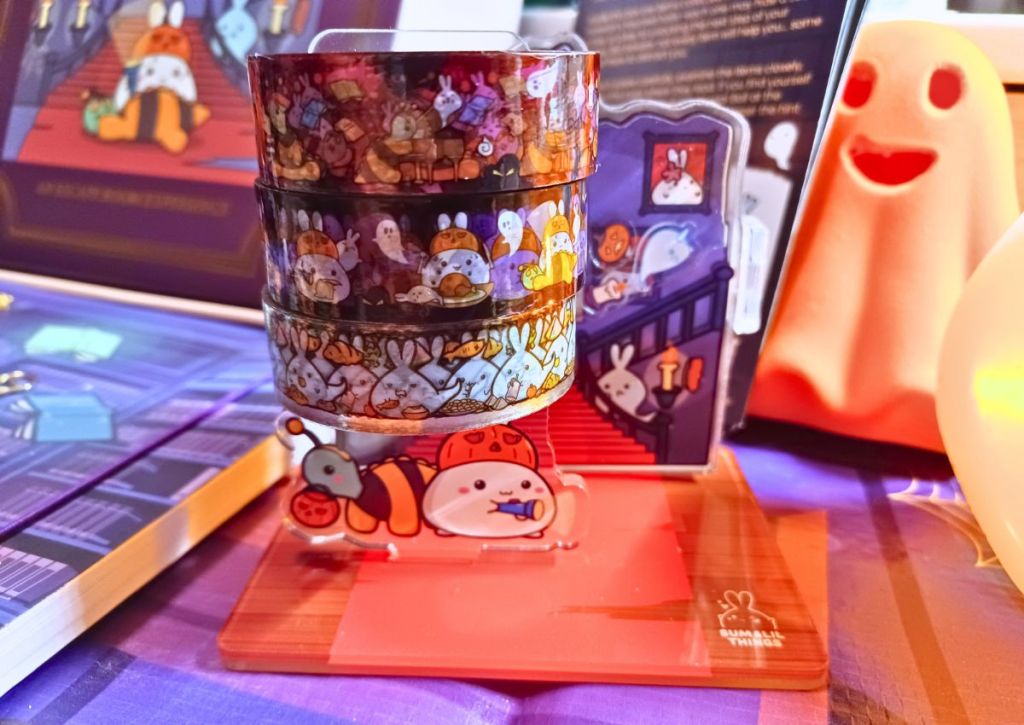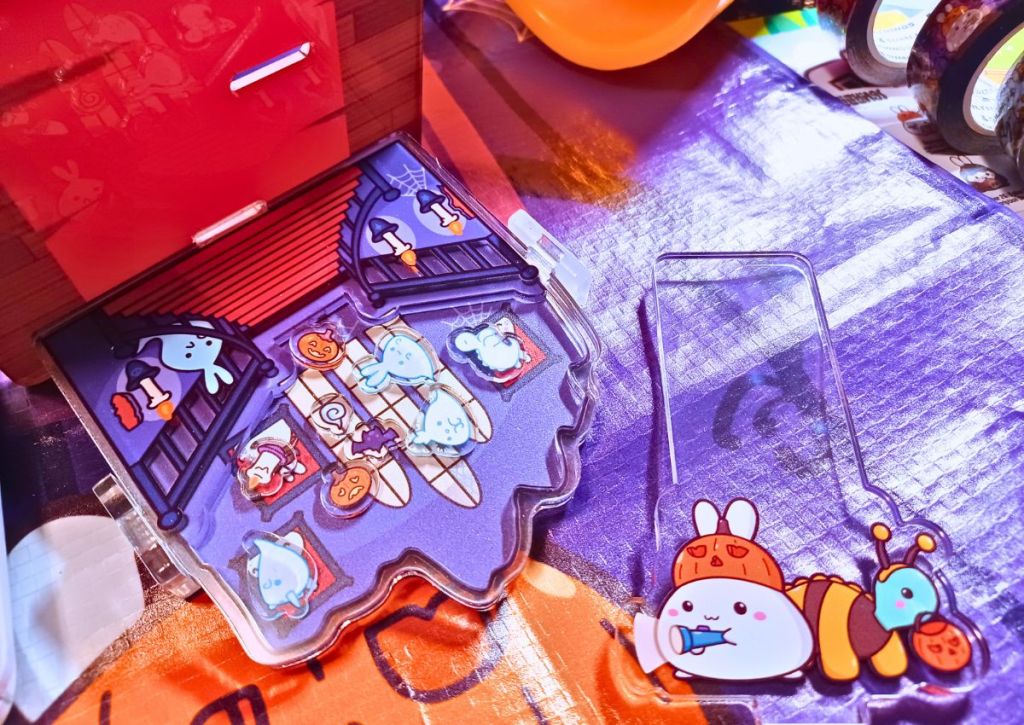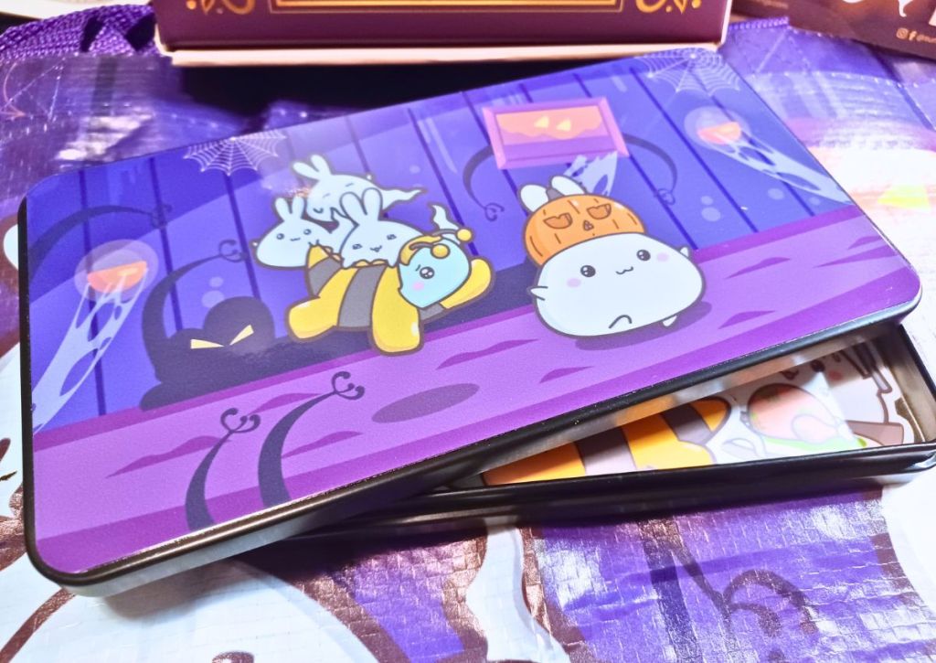 It’s a sturdy metal pencil case with the Haunting of Mistwood Manor design on the front, and although it looks thin, you can actually pack a surprising amount in there! I’ve been tossing it (literally) in my work bag — lovingly nicknamed the Toss Bag — for a whole week, and guess what? Not a SINGLE dent! 🏆